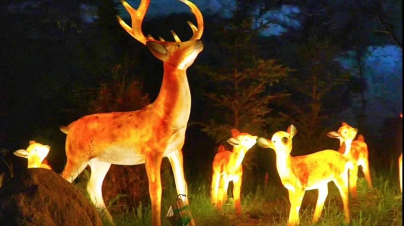 宗家沟景区更新灯光布置,以灯光科技文化为主线,通过逼真的灯光造型、丰富的灯光种类、生动的场景再现打造裸眼3D灯光秀,为全县游客提供一场先锋视听盛宴,用激情点燃夏夜。