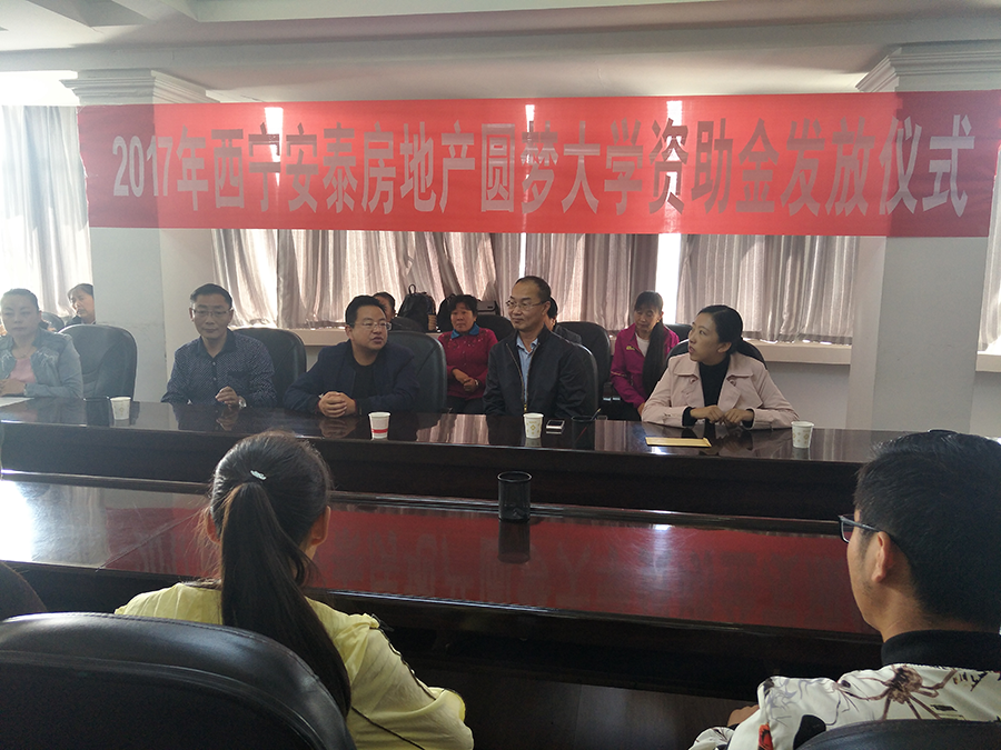 为进一步发挥共青团作用,集聚各方的爱心,助力精准扶贫,帮助贫困大学生实现大学梦想。8月29日上午,团县委举行2017年西宁安泰房地产圆梦大学资助金发放仪式,共青团西宁市委青工部部长乔文延、西宁安泰房地产开发有限责任公司总经理郑俊忠、办公室主任牛旦春出席了发放仪式,受资助贫困大学生及家长代表60余人参加仪式。